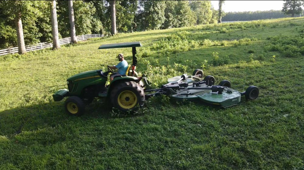 Our bush hog mowing service is designed to tackle dense brush, tall grass, weeds, and unwanted vegetation. We use heavy-duty rotary cutters, commonly known as bush hogs, to effectively cut and mulch vegetation. This helps to clear overgrown areas, maintain visibility, and promote healthy regrowth.